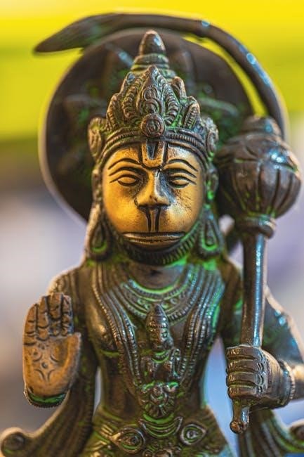 PDF versions allow devotees to study the nuances of this devotion in the original language. The Chalisa details Hanuman’s role in assisting Rama, highlighting his loyalty and courage. This theme resonates deeply, inspiring readers to cultivate similar devotion in their own lives. Accessing the Sanskrit PDF provides a direct connection to the spiritual essence of Hanuman’s love for Rama, fostering a deeper understanding of this core concept.